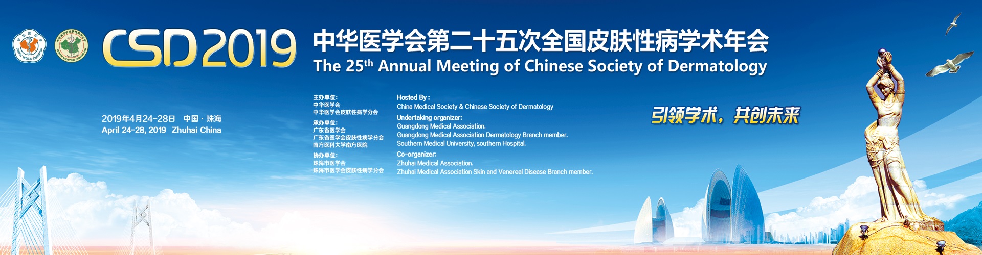 The Chinese Medical Association, department of Dermatology and venereology will hold its 25th National Annual Academic Congress of Dermato-venereology in Zhuhai International Convention and Exhibition Center, Zhuhai city, Guangdong Province from April 24 to 28, 2019. The theme of the conference is "lead the academic, create the future".